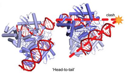 如果细胞核DNA如此之短仅单个横档能够形成,那么这种复合物是不稳定的,而且快速地解体。Hopfner解释道,“这种复合物像拉链那样发挥功能。如果仅有一个链牙互锁,那么它能够容易地被拉开,但是当很多链牙互锁时,那么拉链的中间部分就不能够分开。”某些其他的蛋白能够促进这种梯子结构形成:它们导致细胞质DNA形成U形转弯,这些U形转弯允许首批cGAS二聚体插入,随后其他的cGAS二聚体容易地跟着插入到细胞质DNA双链之间。这些研究人员能够证实某些应激参与其中,而且细菌细胞核和线粒体中的DNA包装蛋白通过让DNA结构化而促进cGAS激活。