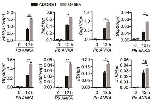 中国科学院院士张亚平团队对收集到的非洲尼日利亚6个城市的15个家犬样品,以及来自非洲不同国家的4只非洲金豺(Canis anthus)样品进行了全基因组测序。群体遗传结构分析显示,非洲家犬有独立的遗传组分。群体历史模拟显示,家犬约1万4千年前迁移到非洲(图1)。经历一次强烈的瓶颈效应后,非洲家犬与非洲金豺发生基因交流。全基因组选择信号扫描分析显示,非洲家犬群体在抗疟疾、免疫反应、紫外线保护等相关信号通路受到自然选择的作用。研究人员集中对ADGRE1基因开展深入研究,发现该基因与非洲人群对疟疾的易感性相关。通过疟原虫侵染小鼠巨噬细胞系实验,证明ADGRE1基因参与了巨噬细胞对疟原虫的胞吞作用,并通过加强I型干扰素通路相关基因的表达量抵抗疟原虫的侵染(图2)。非洲犬特有的非同义突变(G655A)能够加强ADGRE1基因的功能。